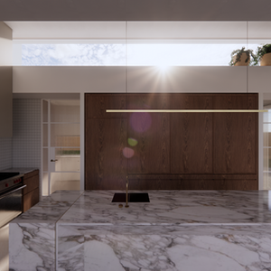 The design for this grand monolithic Kitchen space was all encompassed by the clients vision to create something a little bit different while making a big, bold statement.